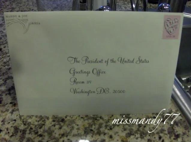 Here's our invite to the President! Hopefully, we'll get a response like other brides have. But we did hear back from Mickey & Minnie Mouse!