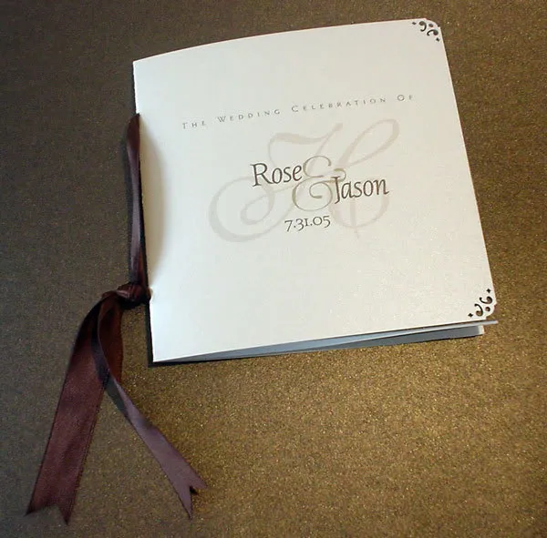 I was fortunate enough to find Phyllis of Sweet Paper Studio (no longer in business) to handle all my menus, programs, escort cards, table numbers and more all at little or no cost to me. She's just starting her company and needed brides to use her work in her portfolio. She's already shown such great promise and designed our monogram as you can see on the top of the bio. She's shown me a lot of additional proofs, and so far everything looks AMAZING. We really needed this break and now we'll be able to have the wedding we always wanted, without breaking out bank accounts! Luckily, she's relocated to Southern California, so we can pick up our printed items that she's made for us locally! You can see some samples of her work below. Thank you, Phyllis!
